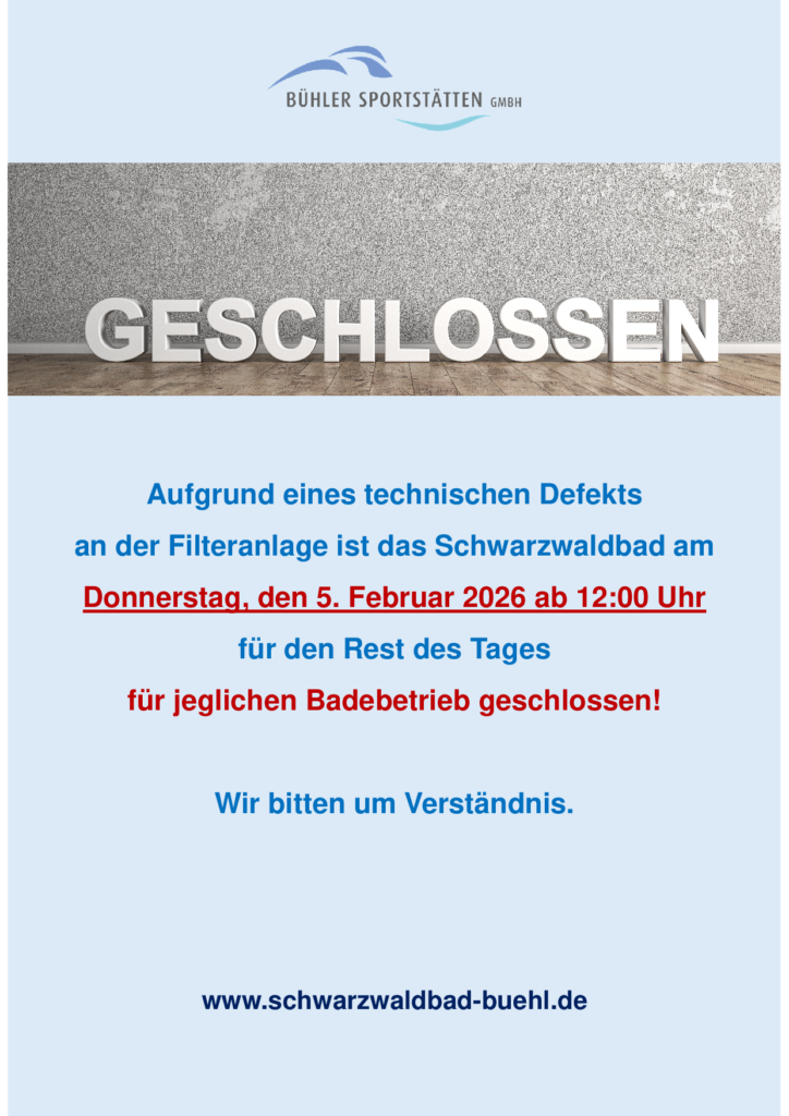 Bad am 5.2.26 ab 12 Uhr geschlossen!