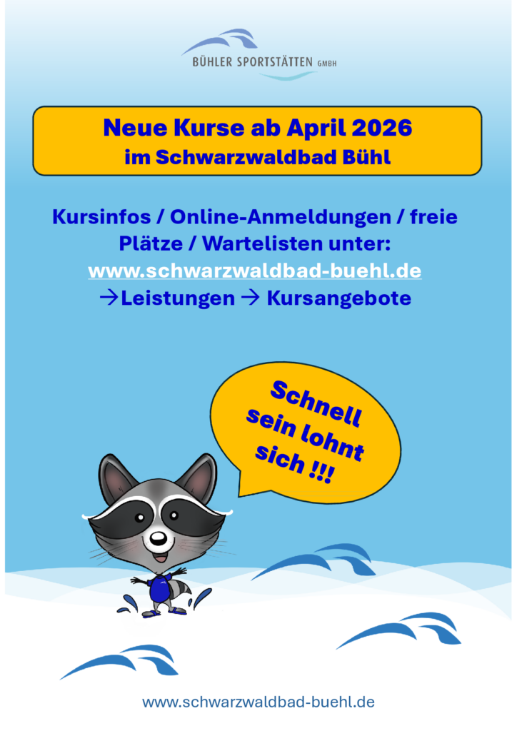 Mit im Gepäck sind für Erwachsene ein Anfänger-Schwimmkurs und ein Anfänger-Kraulkurs sowie zahlreiche Kinderschwimmkurse von Wassergewöhnung über Seepferdchen bis zum Seeräuber. Der Seeräuberkurs richtet sich speziell an Kinder, die das Seepferdchen-Abzeichen bereits erfolgreich abgelegt haben und ist sozusagen der Aufbaukurs, um das Erlernte zu vertiefen. Beim Button „Leistungen“ / „Kursangebote“ gibt’s alle Kursinfos. Hier melden Sie sich direkt online an und können sowohl freie Plätze als auch Wartelisten einsehen. Wir wünschen viel Erfolg!